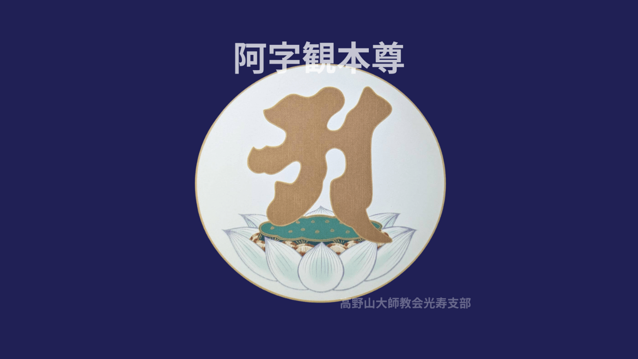 ■ 阿字観瞑想私たちが大宇宙から脈々と伝えいただいている共通した生命のことを「大日如来」といい、それを古くインドで1文字に表したのが「阿(ア)」であります。真理の言葉「阿(ア)」を心の中で念じ、また声に出すことで大宇宙(大日如来)と一体になることを感じる瞑想法が阿字観です。(引用)高野山阿字観瞑想体...